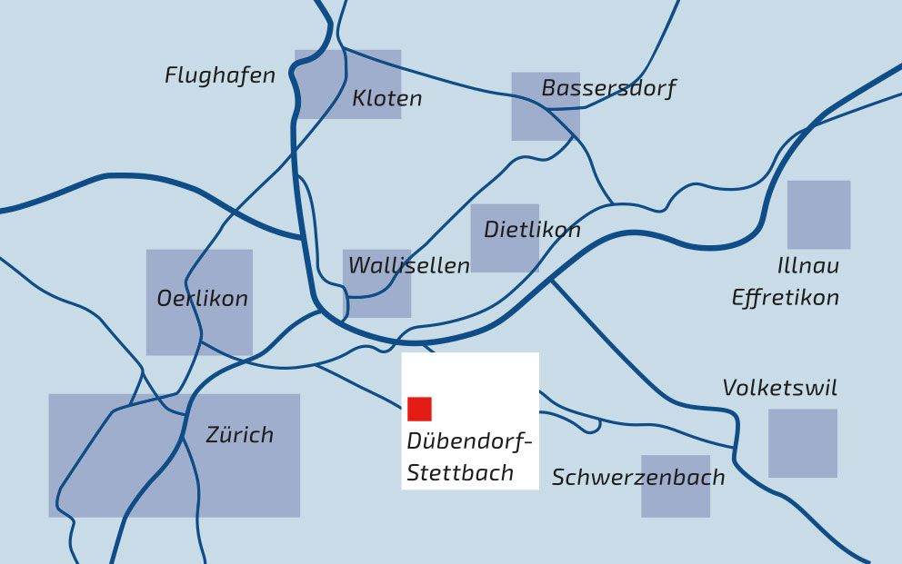 Vom Stettbacherhof in Dübendorf sind sie schnell überall: zu Fuss über die Strasse beim Bahnhof Stettbach, mit dem Auto im Nu auf der Autobahn Richtung Zürich, Bern, Winterthur oder Uster.