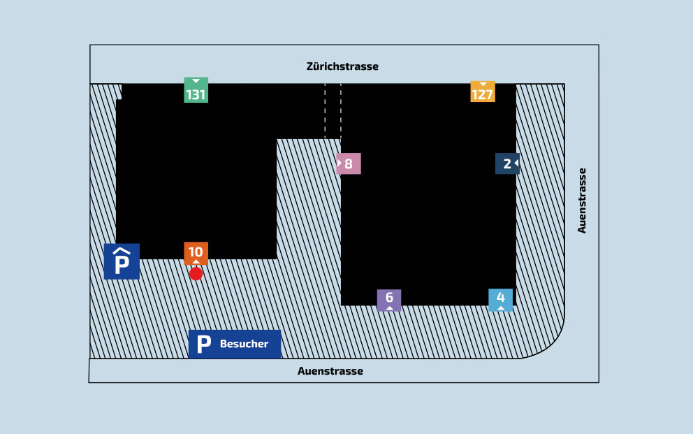 Parkplatz gesucht? Kein Problem! Vor den Gebäuden des Stettbacherhofs wie auch in der Tiefgarage stehen Ihnen ausreichend Besucherparkplätze zur Verfügung.