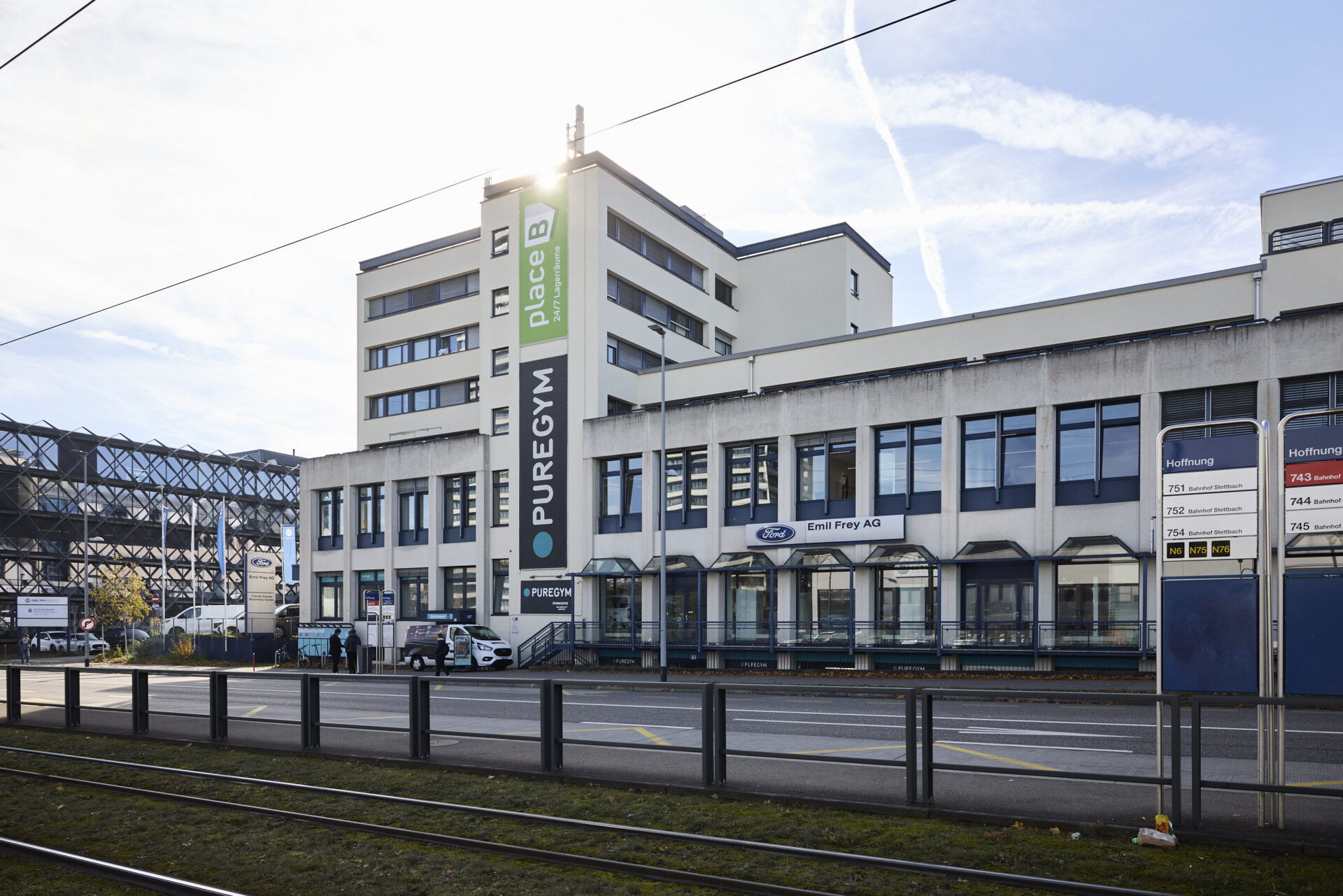 Der Stettbacherhof mit seiner zentralen Lage beim Bahnhof Stettbach in Dübendorf bietet Ihnen Mietflächen für das Gewerbe und Ihr Unternehmen.