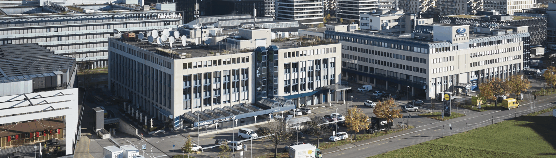 Der Stettbacherhof erstreckt sich über mehrere, zusammengebaute Gebäude, die unterirdisch über eine Tiefgarage miteinander verbunden sind. Vor Ort finden Sie im Stettbacherhof in Dübendorf Parkplätze für Sie, Ihre Mitarbeitenden und Ihre Besucher.